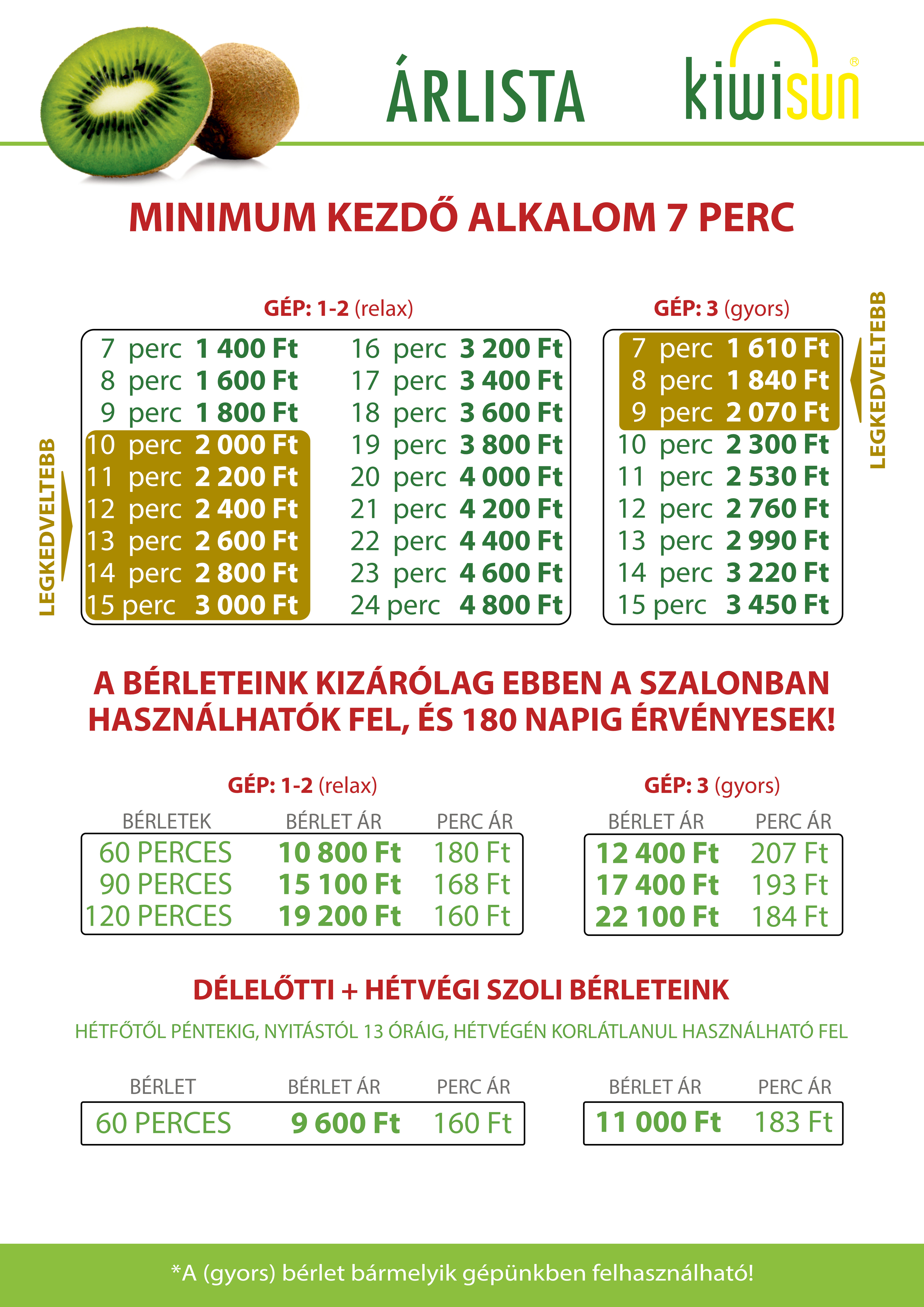 Kiwisun CsongrádCím: Csongrád, Fő utca 70 Telefon: +3663620581 Nyitvatartás Hétfő - Szombat 9-21 ig Vasárnap 10-20 ig |