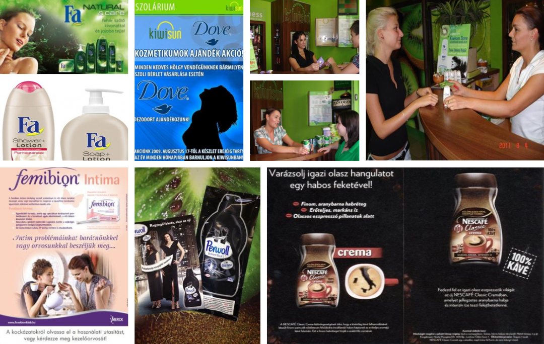 Néhány fotó és plakát a megvalósult és nagyon sikeres céges együttműködésekről, a bevezetésre kerülő új termékekről, egyes kihelyezésre került plakátokról, a termékismertető átadásáról egy szalonban: